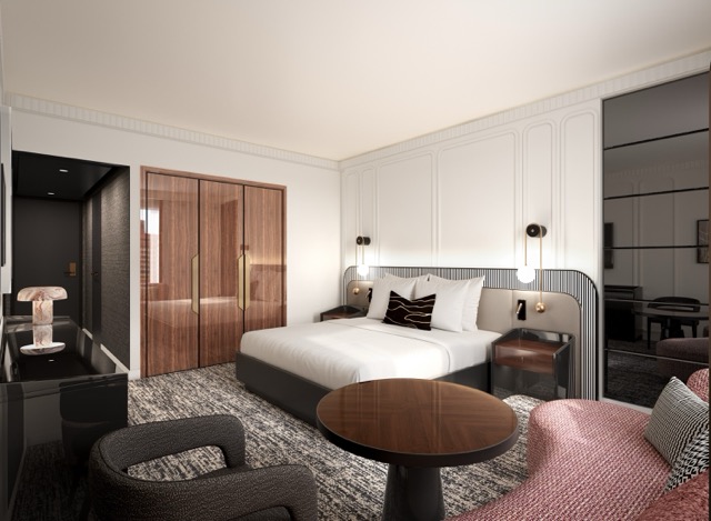 Une installation lumineuse sculpturale sera placée au centre du grand escalier, inspirée par le mouvement du tutu d’une ballerine. La moquette des salles de réunion et d’évènements sera inspirée des motifs Art Déco des grandes Maisons de couture parisiennes telles que Balmain et Gaultier, combinant des teintes de noir, de blanc et d’or avec des motifs linéaires et symétriques. Une approche soigneusement pensée, qui marie le charme intemporel de Paris à l’énergie débordante de New York, pour une expérience urbaine unique.