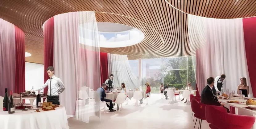 Un projet qui comprend un pôle d’enseignement professionnel de cuisine et de service, des restaurants d’initiation, un pôle barman et sommellerie, une salle polyvalente, mais aussi une terrasse avec vue sur le petit bois voisin. Pour Emmanuelle Poggi lauréate avec A3 architectures, il s’agissait d’abord de raccrocher le bâtiment à la ville. Un bel outil pour former les meilleurs élèves de la région dans ce secteur d’excellence en Nouvelle Aquitaine : la gastronomie