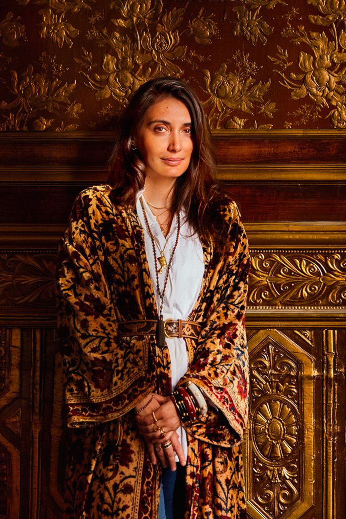 Dès l’ébauche des première aquarelles, Laura Gonzalez nous confie avoir en tête la vision d’un « hôtel particulier intemporel », l’image unique d’un château-hôtel en plein Paris dont les pièces en enfilade et les volumes – 3,80 m de hauteur sous plafond dans les chambres – font tourner la tête. « Je voulais créer une vaste maison qui réinvente les codes parisiens avec des touches Art déco, quelques références au XIXe siècle et beaucoup d’objets chinés », poursuit-elle, nous racontant comment son confinement a été, entre autres, rythmé par les ventes aux enchères en ligne et les réunions de chantier virtuelles. Avec la volonté de « ramener l’architecture du bâtiment au premier plan », l’architecte d’intérieur en révèle les trésors… Jusqu’à présent camouflées sous des caissons, les frises se dévoilent, les arches voûtées gagnent en lumière et la coupole affiche une fresque décorative dont elle confie la réalisation à l’Atelier Roma – « Je voulais créer une fresque qui semble avoir toujours été là et qui fasse écho aux mosaïques d’inspiration néoclassique. »
