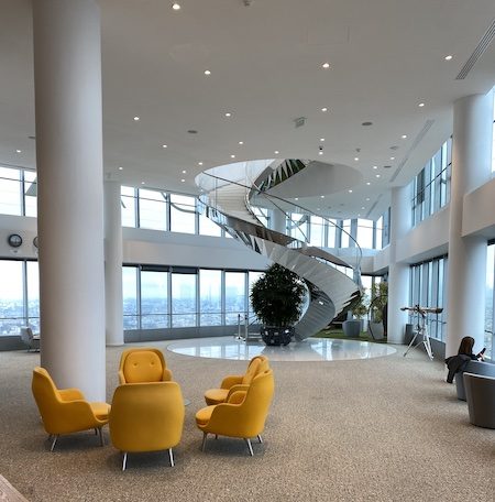 Là encore, c’est une aventure incroyable ! J’ai été embauché par BearingPoint quelques mois avant son installation dans la tour CBX de La Défense. J’ai ainsi eu la chance de participer activement au réaménagement des 5200 m2 sur 4 étages avec l’équipe Real Estate emmenée par Olivier Chappert (partner) et à la supervision du suivi des travaux réalisés par Nexity (Contractant Général) et Studios (Cabinet d’architectes).