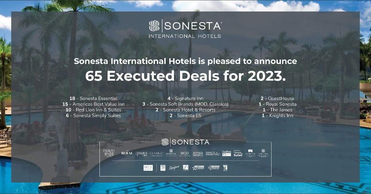 Les 65 contrats de franchise finalisés en 2023 sont répartis sur 12 marques de Sonesta. Sonesta Franchising offre aux franchisés plusieurs alternatives aussi bien dans les segments haut de gamme, lifestyle, qu’en milieu de gamme et économique. La croissance continue de Sonesta, son approche centrée sur les propriétaires, sa disponibilité sur le marché et son accessibilité pour les dirigeants en font un choix incontournable pour les propriétaires.