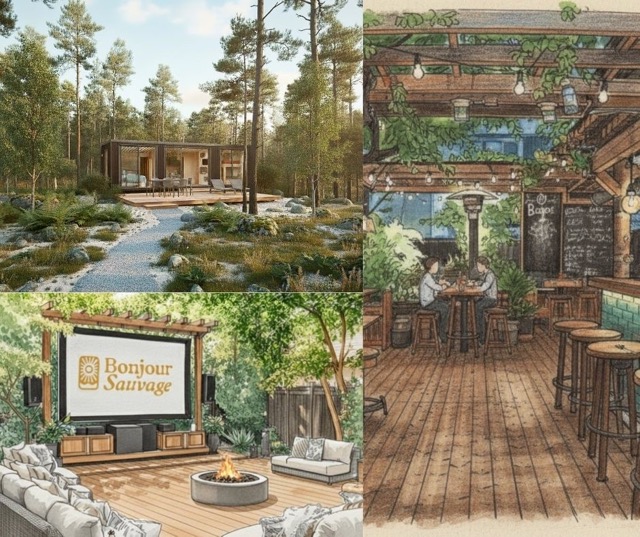 BonjourSauvage ne construit pas ex nihilo : elle métamorphose deux anciens campings en écosystèmes hôteliers immersifs :