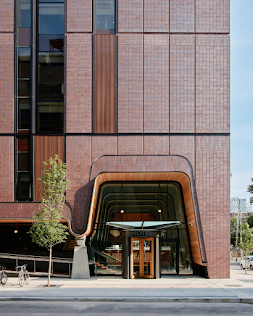 Le bâtiment en impose. Imaginé par la firme torontoise Shim-Sutcliffe Architects, celui-ci semble à la fois vouloir se fondre dans son environnement et sortir du lot. En cause ? Sa façade géométrique recouverte de briques rouges choisies pour faire écho aux murs de la ville, longtemps teintés de la même couleur car construits grâce à l’argile issu de la commune voisine de Don Valley.