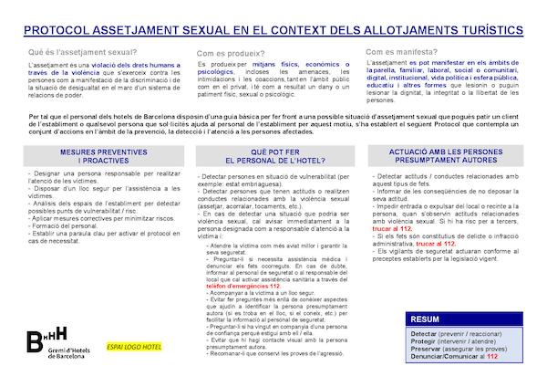 L'association hôtelière de Barcelone "Barcelona Hotels Guild" s'engage contre le harcèlement sexuel.