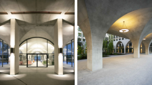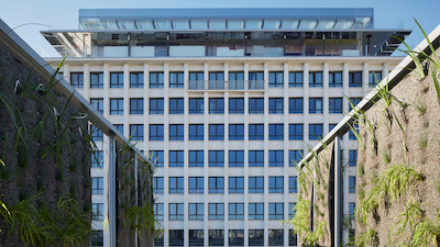 C’est l’héritage de l’ancien immeuble. Totalement réhabilitée, une partie de la tour principale du bâtiment en forme de H abrite des bureaux sur plusieurs étages : open spaces, coworking, les espaces sont ouverts et appellent au calme.