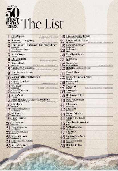 Petit nouveau dans la longue litanie des prix, la première édition des 50 meilleurs hôtels du monde a été dévoilée lors d’une cérémonie de remise de prix en direct au Guildhall de Londres ce 19 septembre. Réunissant pour la première fois la communauté hôtelière mondiale, la toute nouvelle liste célèbre les meilleurs établissements et expériences de voyage à travers le monde.