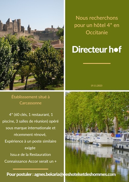 Opportunité | Nous recherchons Directeur H•F pour Hôtel 4* situé à Carcassonne #Opportunité #DirecteurHotel #Carcassonne