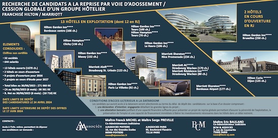Naos Hotel Groupe, franchisé Hilton et Marriott, 13 #hotels en exploitation, 2 ouvertures en cours, 11 projets d’ouverture, total bilan : 261ME, Chiffre d’affaires de 38 millions d’euros pour les 6premiers mois 2023, recherche un #adossement ou un #repreneur.