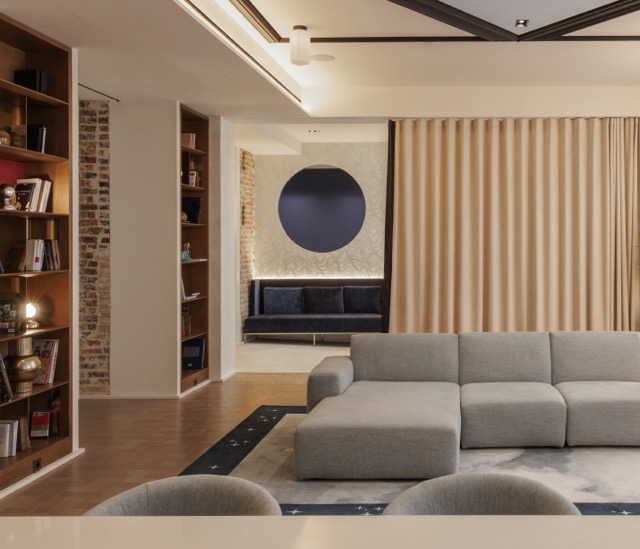 Comme le hublot qui offre depuis la station spatiale une profondeur de champ sur la galaxie. Élégante, impliquée, la scientifique multi-diplômée a choisi elle-même l’exacte nuance du bleu du ciel sur le tapis. Et parce que la vision du premier pas sur la lune de Neil Armstrong a scellé à jamais sa destinée, Philippe Maidenberg l’a immortalisé sur la table basse tandis que la chambre 300 dévoile une bulle en plexi où se blottir suspendu.
