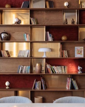 Au sol, un parquet sombre rappelle la scène des ballets nationaux, un immense bas-relief immortalise les pas de Marie-Agnès Gillot venue faire ses empreintes avant l’ouverture, et tandis que ses demi-pointes sont suspendues d’un côté du mur, des miroirs ornés d’une barre de danse viennent refléter la lumière et agrandir l’espace. Un peu partout, les touches de rose poudré viennent apporter douceur, jusque sur les zelliges de la salle de bain.